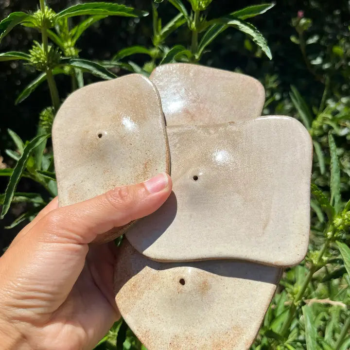 Find a space to light stick incense and take some deep breathes. These beautiful little holders all measures about 3 inches. Each batch is always slightly different!